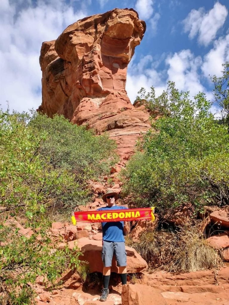 „Посакувам да бидам во Македонија со моите пријатели и семејството протестирајќи против неправдата на француско-бугарско-ЕУ диктат и на македонската квислиншка влада. Засега ја носам Македонија со мене, овде во црвената земја Аризона. Запомнете, ова завршува самона еден начин: Македонците победуваат и оние поединци/и институции кои сакаат да го избришат македонскиот идентитет и јазик губат.“