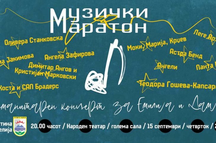 Музика Општина Гевгелија ГЕВГЕЛИСКИ МУЗИЧКИ МАРАТОН – ХУМАНИТАРЕН КОНЦЕРТ ЗА ЕМИЛИЈА И ДАМЈАН септември 14, 2022