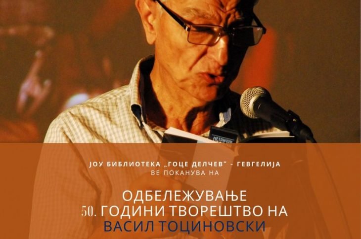 Култура Македонија Општина Гевгелија ЈОУ БИБЛИОТЕКА „ГОЦЕ ДЕЛЧЕВ“ – ГЕВГЕЛИЈА ЌЕ ОДБЕЛЕЖИ 50 ГОДИНИ ТВОРЕШТВО НА ВАСИЛ ТОЦИНОВСКИ октомври 26, 2022