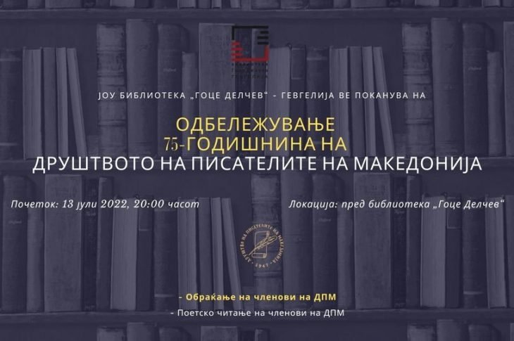 Култура Македонија Општина Гевгелија ВО ГЕВГЕЛИЈА ЌЕ СЕ ОДБЕЛЕЖИ 75 ГОДИШНИНАТА НА ДРУШТВОТО НА ПИСАТЕЛИ НА МАКЕДОНИЈА јули 12, 2022