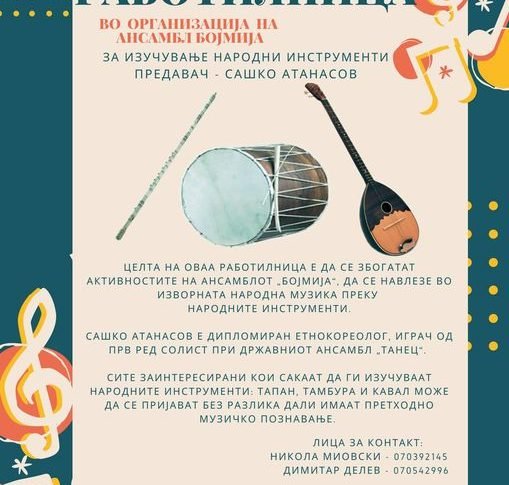 Живот Култура Македонија Регион АНСАМБЛОТ „БОЈМИЈА“ ОРГАНИЗИРА МУЗИЧКА РАБОТИЛНИЦА ЗА СИТЕ ВЉУБЕНИЦИ ВО МАКЕДОНСКИОТ НАРОДЕН МЕЛОС јуни 3, 2021