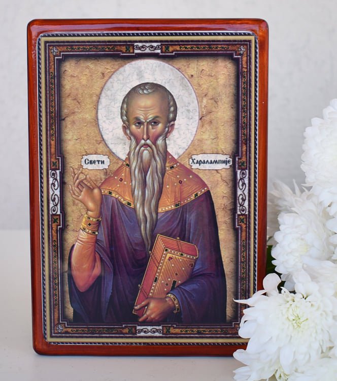 Свети Харалампиј бил епископ на градот Магнезија, Тесалија. Мудар старец. Во текот на 113-те години од својот живот бестрашно го проповедал Христос сред-среде бесните прогони на христијаните. За Христа пострадал на крајот од вториот век, за време на владеењето на императорот Септимиј Север.