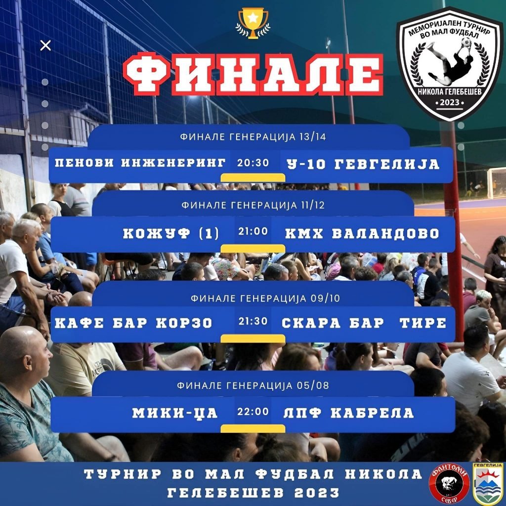 Вечерва, сабота, 29 јули со почеток од 20,30 часот стартува големото финале на Првиот меморијален турнир во мал фудбал „Никола Гелебешев 2023“.