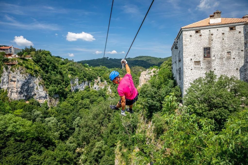Ако сте љубители на авантури, за вас има зиплајн со кој можете да летате над јамата! Линиите долги 220 и 280 метри ви овозможуваат да летате над бездната на висина од 100 метри со спектакуларен поглед на карпите и замокот.