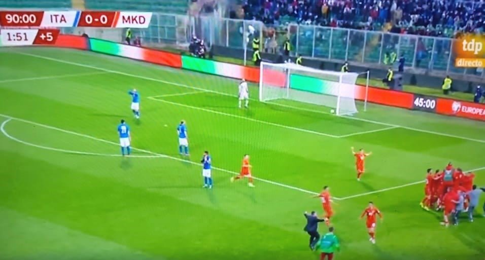 Македонија ја исфрли Италија! Вистинска сензација се случи во судиското продолжение на фудбалскиот натпревар Италија-Македонија во Палермо. Со голот на Александар Трајковски во втората минута од продолжението, македонските фудбалери го победија европскиот првак . Најубавата фудбалска приказна на Македонија продолжува и во финалето ние ќе играме против селекцијата на Португалија.