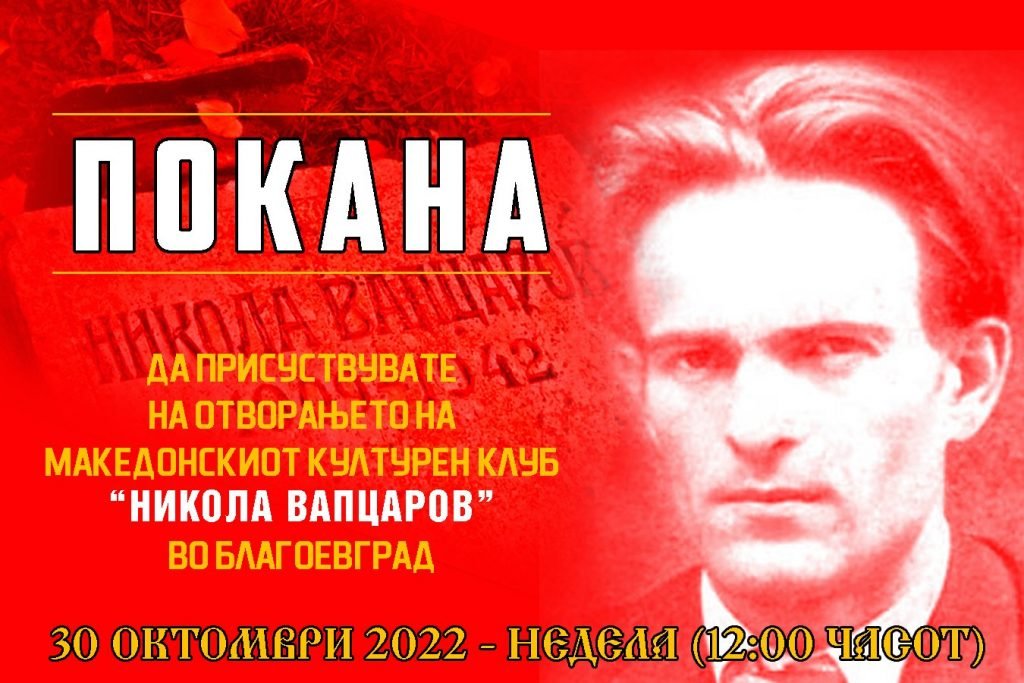 Најавувате проверка кој стоел зад отворањето на Македонски културен клуб „Никола Вапцаров“?