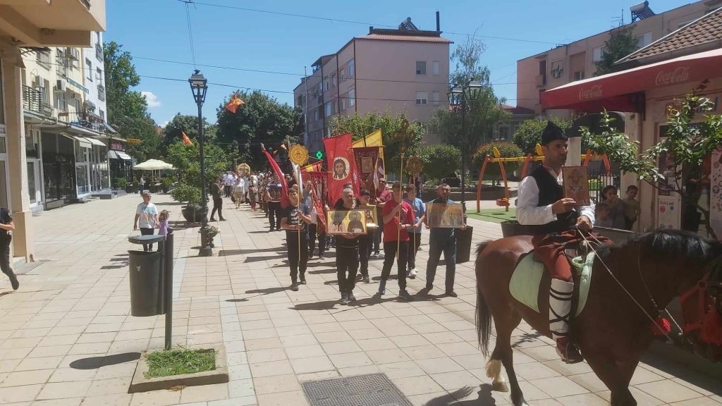 Во 11.00 часот сите граѓани кои милуваа, заедно со уметниците на Ансамбл Македонија и свештениците учествуваат во Литијата Богородица-Цвет кој не венее која ја благослови Гевгелија.